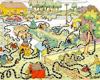 Whenever I saw the Family Circus cartoon with a map of Billy running all over the place I could totally identify with it (actually, that was the only time I really identified with the cartoon; I was always a sweet kid, but never that gosh-darn apple pie — see? There I go a wandering again).